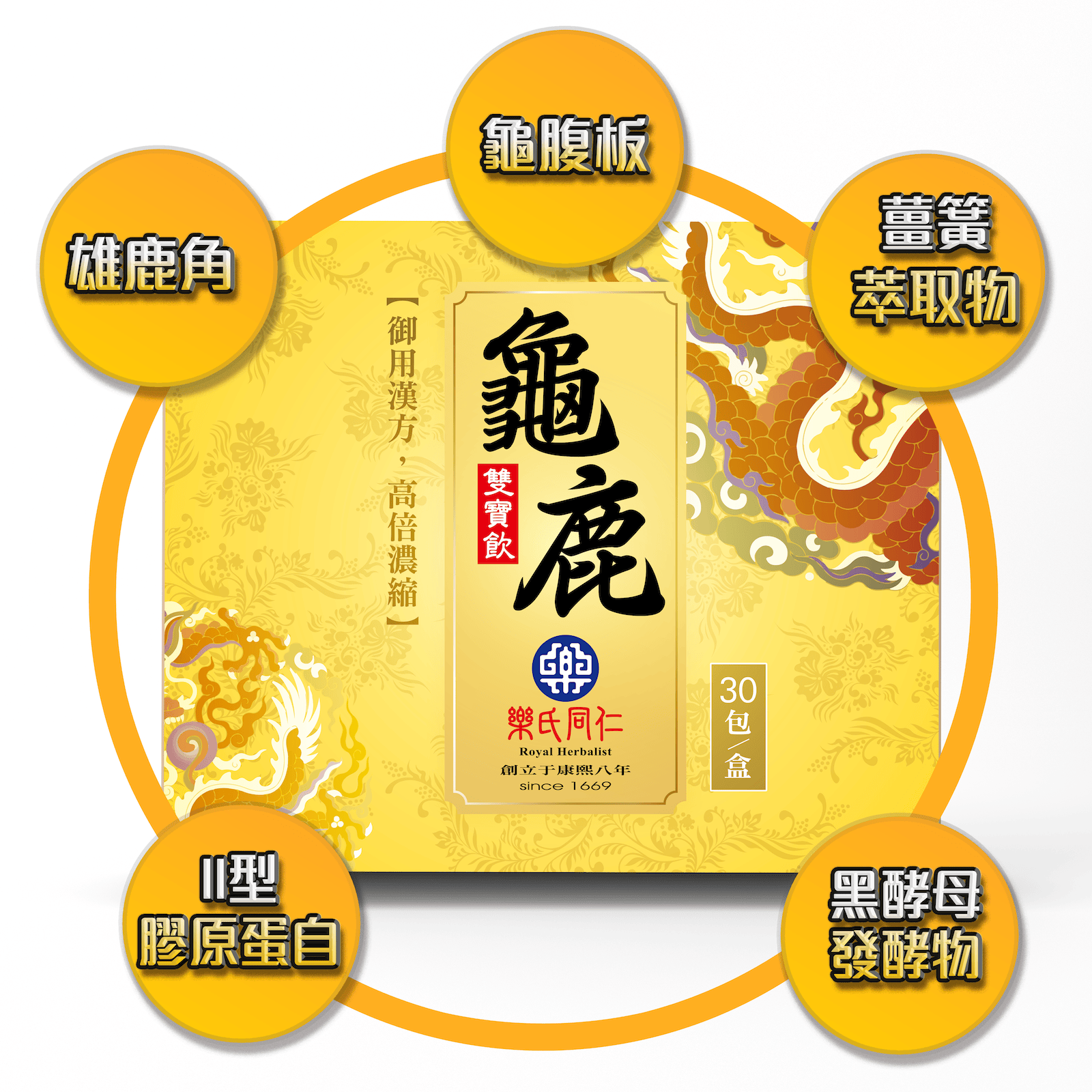 『龜鹿精華』遵循古法製作,龜板及雄鹿角慢火提煉,日夜不斷熬煮。搭配人蔘、枸杞及黃精 .以及古老草本配方,其含有天然鈣質,豐富膠質,是滋補強身的關鍵。